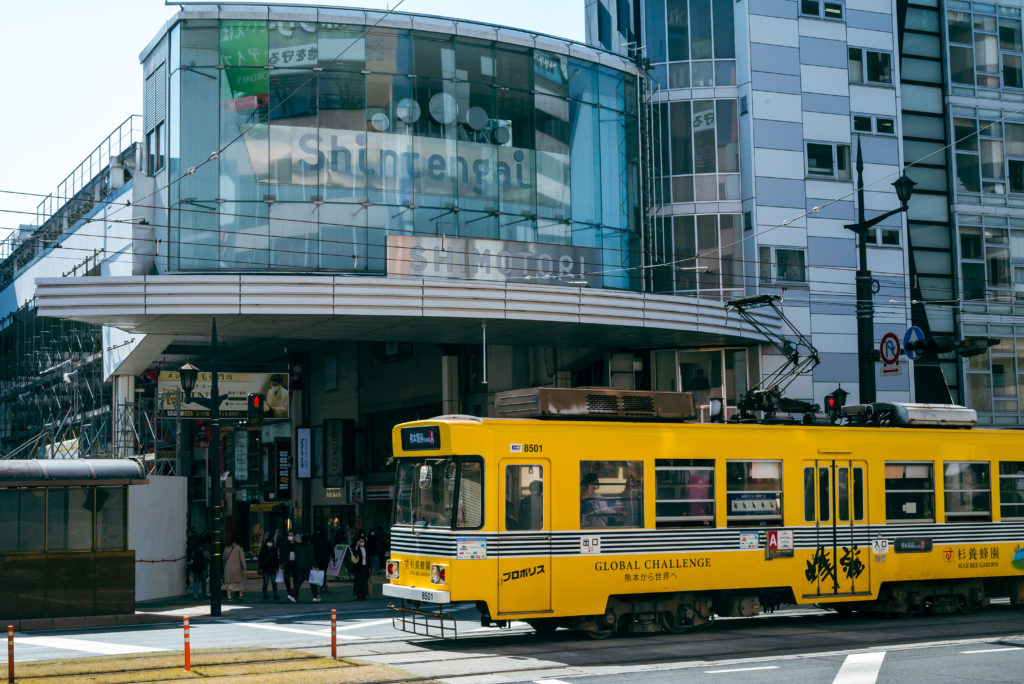 The Kumamoto City Tram has two lines (one from Kumamoto Station and one from Kami-Kumamoto Station) that converge downtown and head out east to the Kengun area. Riders are charged a flat rate, no matter how many stops you stay on, making it a convenient and cheap way to get from Kumamoto Station to downtown Kumamoto or Suizenji Jojuen Garden.
